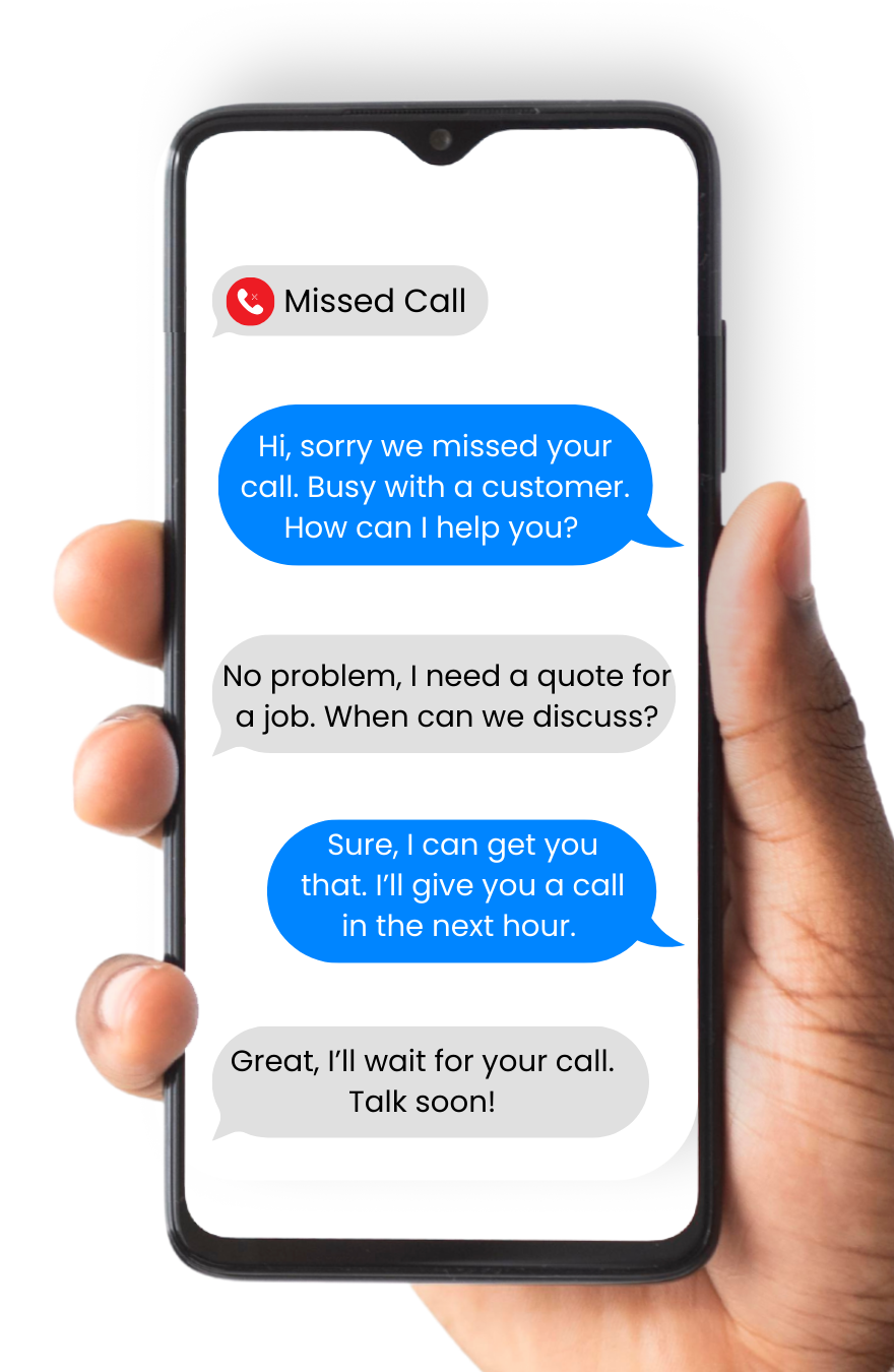 Most customers won’t call twice. If they reach voicemail, they often move on to the next business. Automated text-back ensures you respond within seconds, even when you’re busy or after hours.